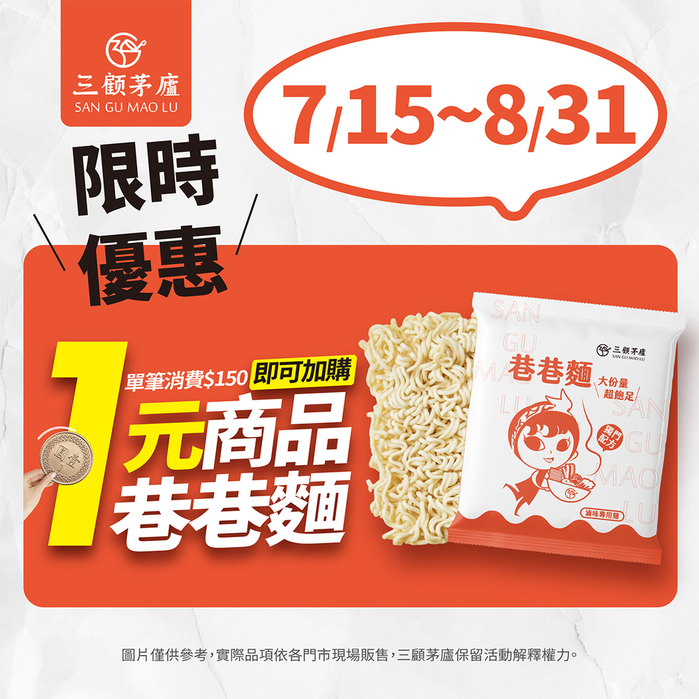 #1元加購巷巷麵 #三顧茅廬暑假限定 #門市限定優惠