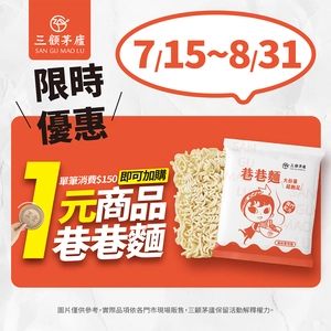 只要單筆消費滿$150,就能1元加購三顧獨家「巷巷麵」 🍜